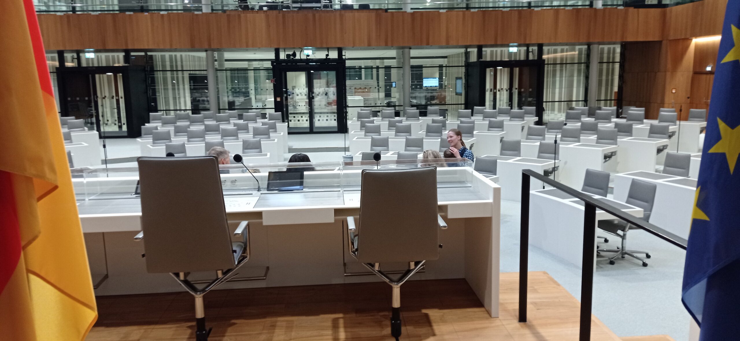Auf Einladung ‚unserer‘ grünen Landtagsabgeordneten Djenabou Diallo Hartmann konnten unsere Mitglieder am letzten Donnerstag den niedersächsischen Landtag besuchen und viele Fragen stellen. Obwohl wir nur ein kleiner Kreis waren, kamen Fragen zu den unterschiedlichsten Themenbereichen: Ausweisung ausländischer Pflegekinder sobald sie volljährig sind, Personalmangel in Krankenhäusern, Zusammenarbeit mit der SPD bei notwendigen Kompromissen in der Regierungsarbeit, Haushaltsfragen (warum Tabletts für alle Schüler*innen von Kl. 7-13?) und vieles andere. Djena nahm sich viel Zeit und gab zu allen Bereichen sehr fundierte Auskünfte. Am Ende konnten wir noch den Plenarsaal besichtigen – auch sehr eindrucksvoll.